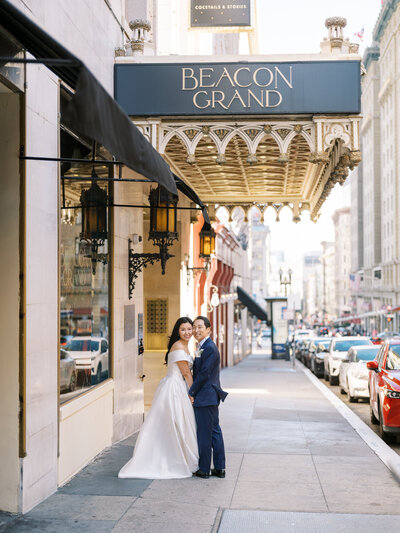 David and Hyein's downtown San Francisco wedding at the Beacon Grand perfectly blended palatial elegance with modern romance. This stylish Bay Area celebration featured soft pastel florals against the hotel's historic architecture, where old-world elegance meets San Francisco sophistication.