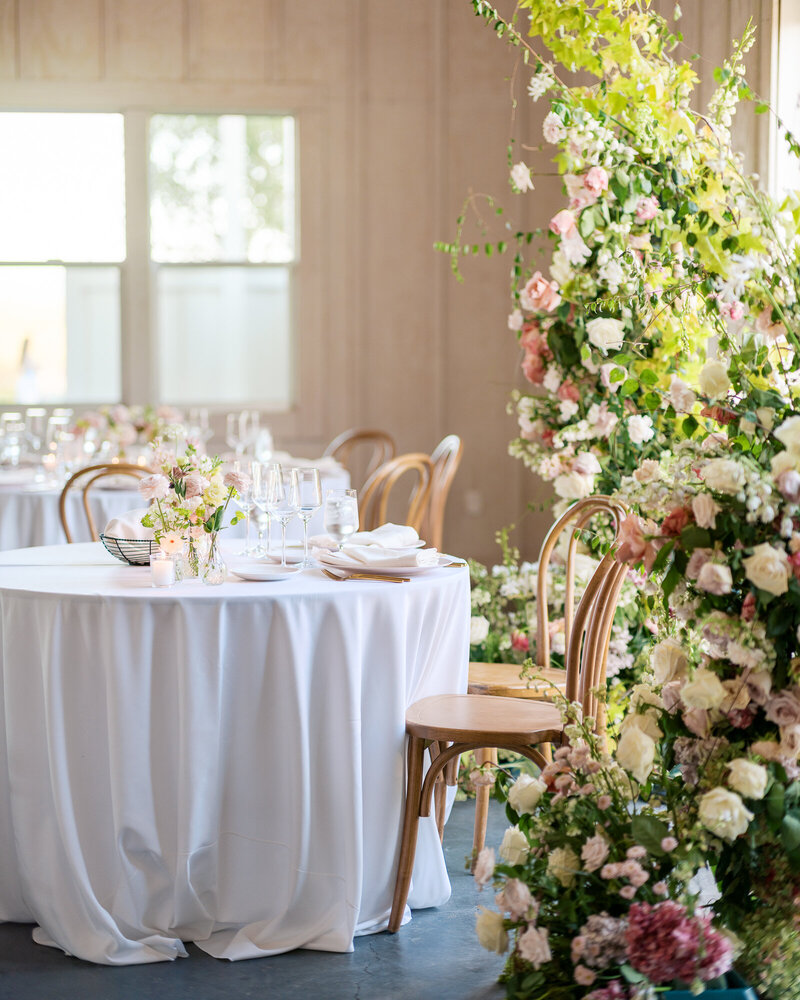 Sarah and Justin's design choices for their wedding at the Barn at Harrow Cellars came together perfectly. Soft blush pink florals and coordinating bridesmaids' dresses created a romantic backdrop against the vineyards. These soft pink touches complemented the venue's incredible views and rustic charm.